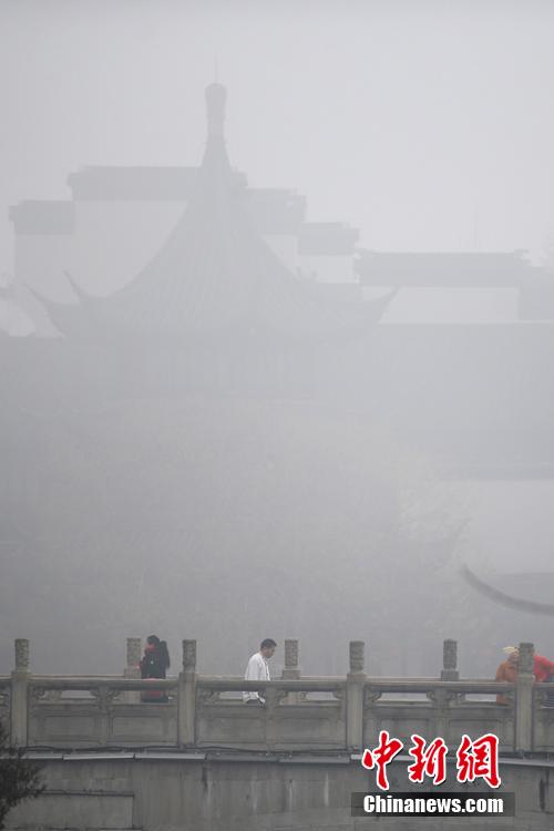 昆明迎今冬首场降雪 消防官兵拍创意照片