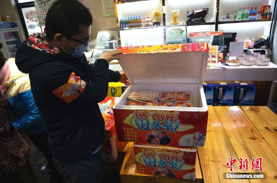 图为志愿者们将刚出锅的热腾腾的饺子装盒,并准备好筷子,让收到饺子的劳动者能方便吃饺子。韩章云 摄