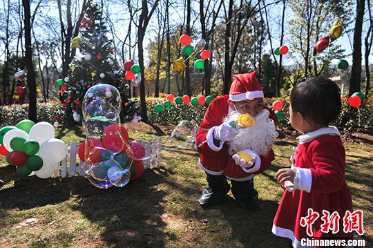 昆明家长扮圣诞老人为孩子提前过圣诞