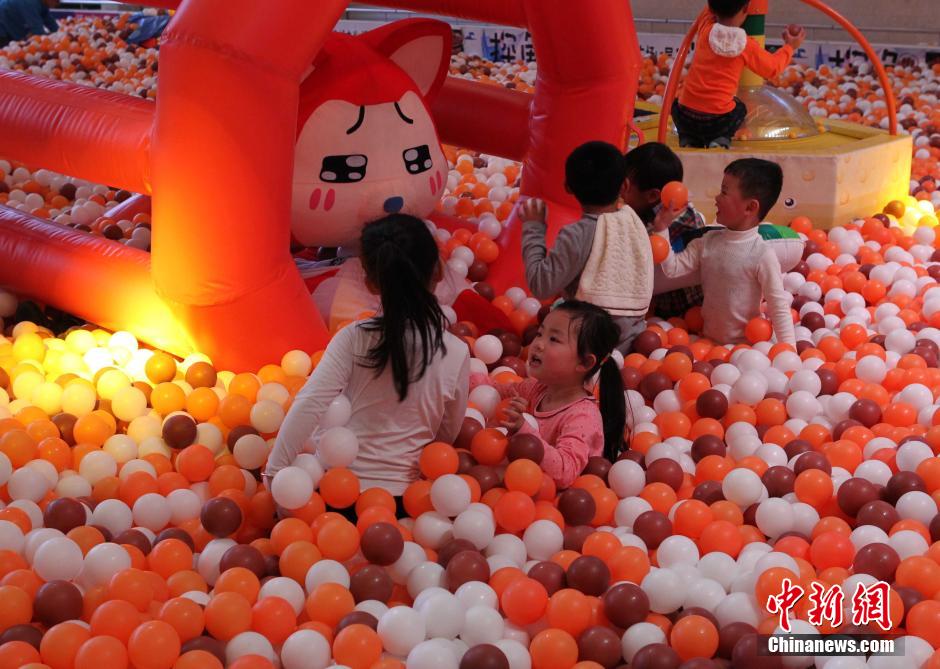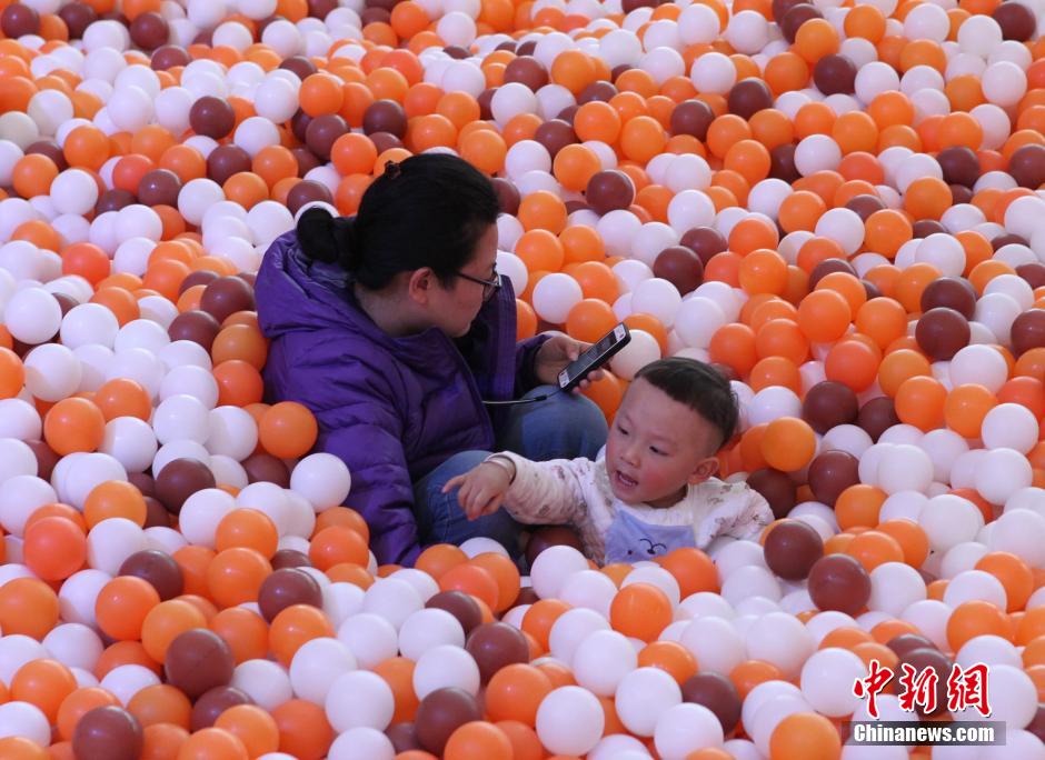 12月23日,重庆一商场内的巨型海洋球池吸引着众多市民前往玩乐。
