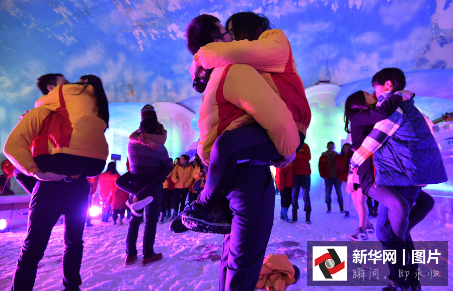 2015年12月26日,广东深圳,深圳世界之窗举办冰雪热吻大赛,50对情侣在阿尔卑斯冰雪世界里展开角逐,秀起各种奇葩吻姿,最终来自广州的一对情侣胜出夺得三千元现金大奖。