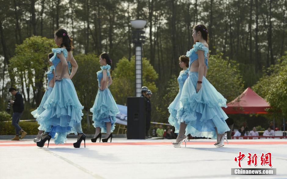 12月31日,2015“新丝路”模特大赛湖南半决赛在汝城举行,40位靓模身着礼服、瑶族服饰同台竞技,争夺前30强。 杨华峰 摄