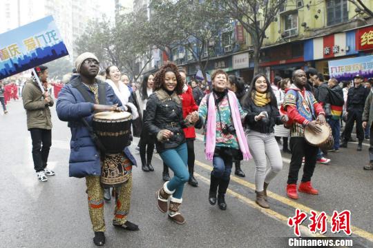 黄桷坪新年艺术节,留学生与重庆市民街头狂欢。 韩璐 摄