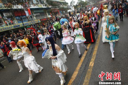 黄桷坪新年艺术节,cosplay打头阵。 韩璐 摄