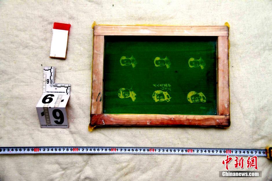 目前,该案主犯高某已被公安机关刑事拘留。在成功查处高某等从事假币犯罪的团伙后,成都警方巡线追踪,于12月18日又在成都市金牛区捣毁一特大制售假币窝点,现场查获2005版100元面额假人民币20余万元(冠字号S90S331276、J15Z045316、J69Y580619),收缴印制假币的机关打印机、“丝网”、切纸刀以及待印制假币的原材料若干(可印制假币200万元)。图为警方查获的作案工具。 钟欣 摄