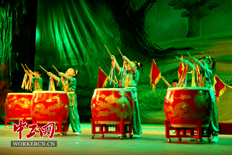 孩子们表演开场舞《欢腾鼓舞》