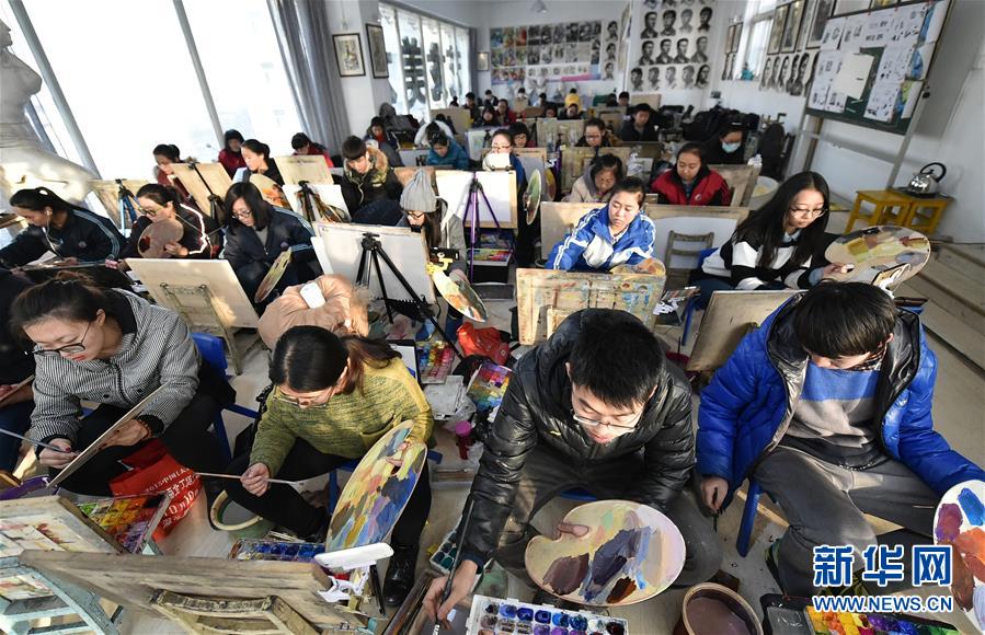 据太原艺龙美术学校校长周欣悦介绍,多年的“艺考热”随着考试难度的加大而逐渐降温,以山西省美术类艺考为例,2006年的考生数量达到四万余人的峰值,而2016年的考生数量则在两万人左右,人数减少了一半,院校的录取指标也相应减少,艺考的“精英化”趋势愈发明显。 新华社发(曹阳 摄)