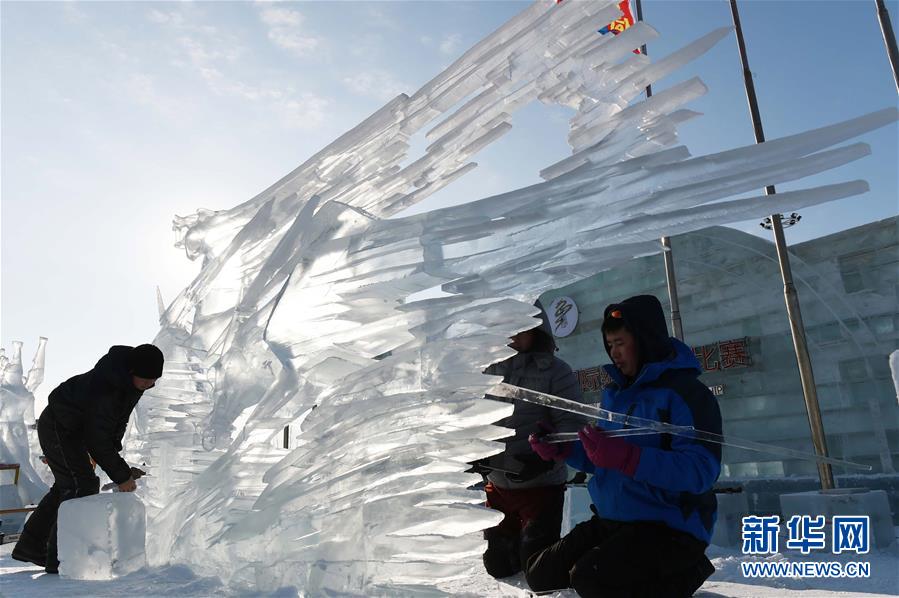 获二等奖的蒙古曼达尔戈壁队的作品《风》(1月4日摄)。 1月4日,第五届中国哈尔滨国际组合冰雕比赛在哈尔滨冰雪大世界落幕,蒙古达尔汗队的作品《母亲》获一等奖。本届比赛有中国、意大利、土耳其、匈牙利、俄罗斯等9个国家的15支队伍参赛。新华社记者 王建威 摄