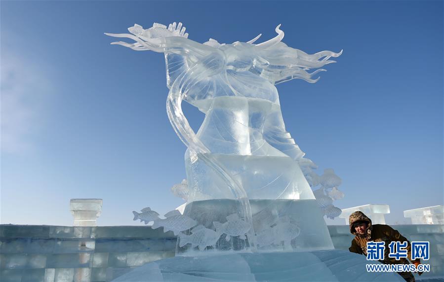 获三等奖的俄罗斯雅库茨克二队的作品《湖神》(1月4日摄)。 1月4日,第五届中国哈尔滨国际组合冰雕比赛在哈尔滨冰雪大世界落幕,蒙古达尔汗队的作品《母亲》获一等奖。本届比赛有中国、意大利、土耳其、匈牙利、俄罗斯等9个国家的15支队伍参赛。新华社记者 王建威 摄