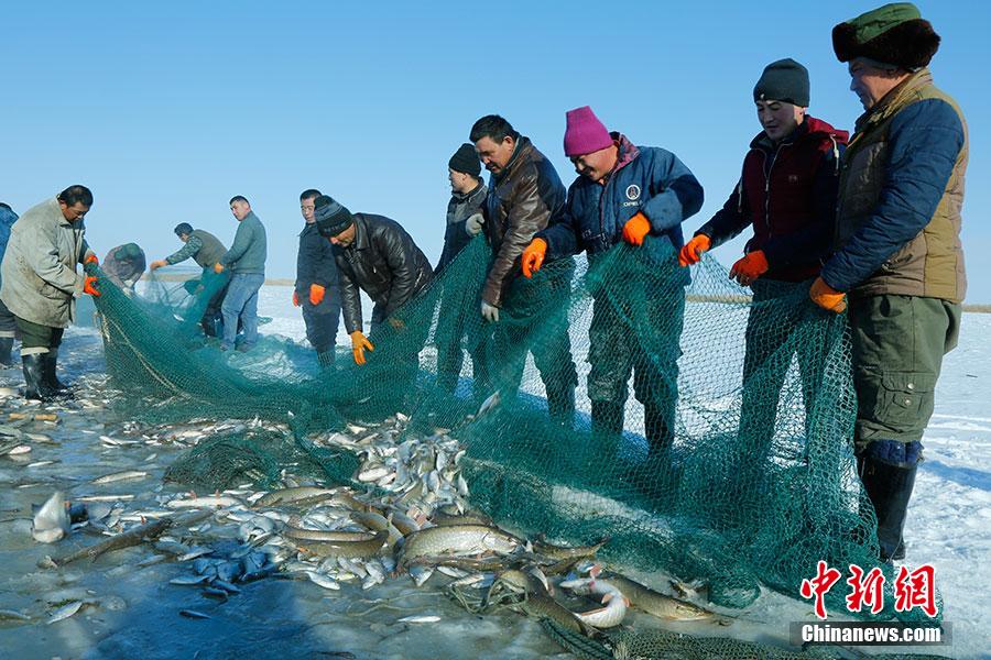 新疆乌伦古湖冬捕拉开序幕