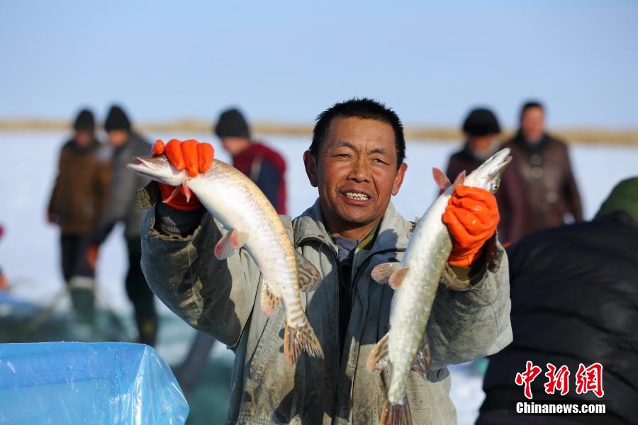 图为渔民展示收获的大鱼。 庄晓颇 摄