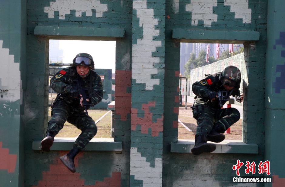 1月6日消息,新年伊始,武警广西总队南宁市支队掀起强军练兵的热潮,把练技术与练作风、练战术与练思想有机结合起来,鼓舞士气砺练“血性”。图为武警特战队员进行快速穿越障碍训练 。 王俞 摄