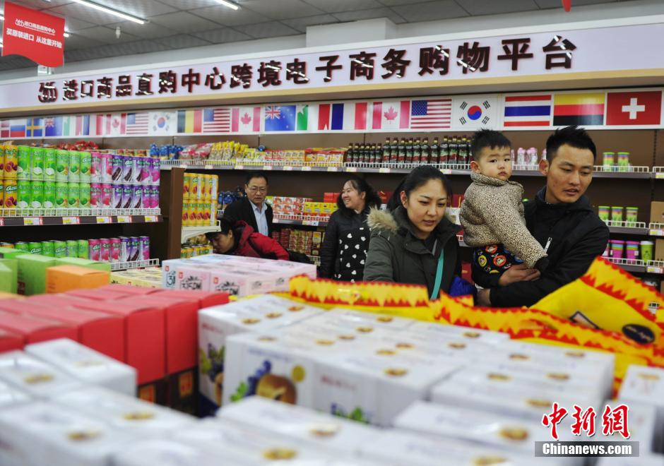 1月6日,石家庄保税店正式开业,市民足不出户即可买到来自美国、英国、澳大利亚、新西兰、韩国、日本、南美等地的食品、日用品、化妆品等多种国外商品。据了解,该市首批体验店有两家,店内汇集80多个国家的进口商品,涵盖了3000多个品牌,5万多种商品。体验店内商品直接从原产地采购,保证商品质量和产地特色。由于减少了中间环节,商品价格与市场上的进口商品相比可便宜10%至30%。图为源源不断的市民进店选购。 中新社记者 翟羽佳 摄