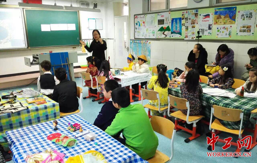 北京市芳草地国际学校集团各校区的17节展示课,以生动的课例向大家呈现了芳草地球主题探索课程的模样,在每个楼层有来自一带一路上十余个国家的小朋友们介绍自己的国家。来自五湖四海不同肤色、不同民族的学生们自己当主角,像众人展示自己国家的文化特色美食、国旗、纪念品等…… (中工网记者 毛邓摄)