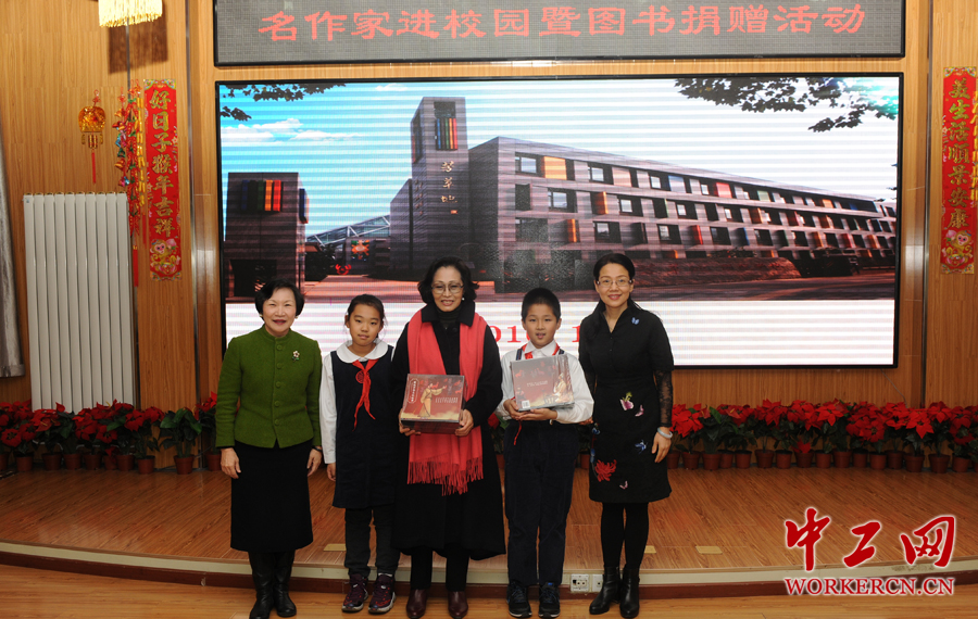 2016年1月11日, 台北故宫博物院前院长周功鑫带着她主编的新书《图说中华文化故事》走进芳草地国际学校日坛校区,与她一同前来的还有中国民族贸易促进会(简称:民促会)贺黎明会长。