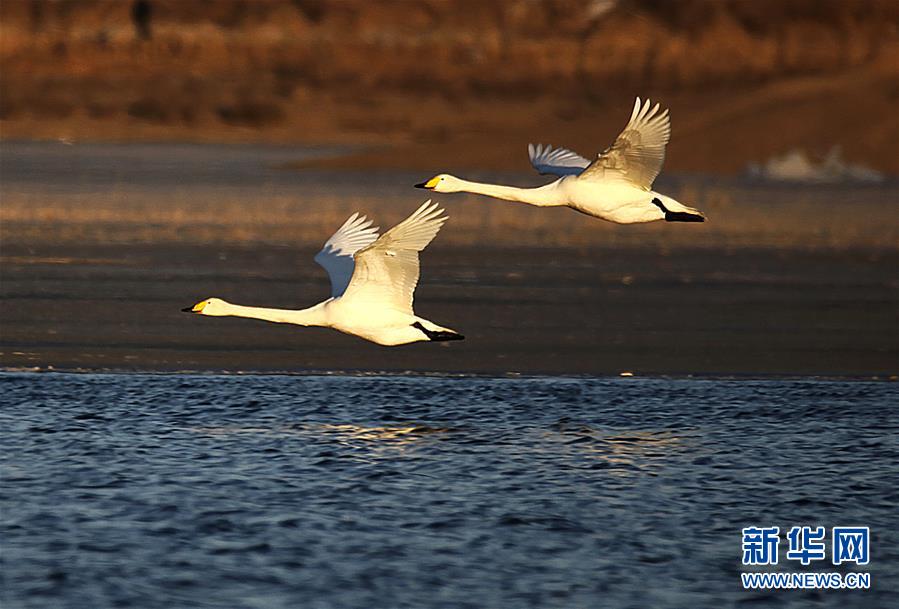 近年来,河北省宣化县立足京津冀生态涵养区的功能定位,不断加大环境治理和生态功能修复力度,使洋河水库及周边湿地成为天鹅、大雁、野鸭、灰鹤等多种鸟类南北迁徙中的栖息地。新华社记者 杨世尧摄