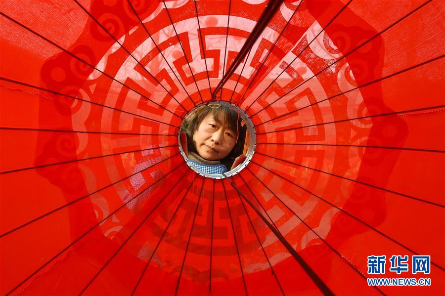 1月12日,河南省焦作市武陟县西陶镇石荆村村民在制作大红灯笼。