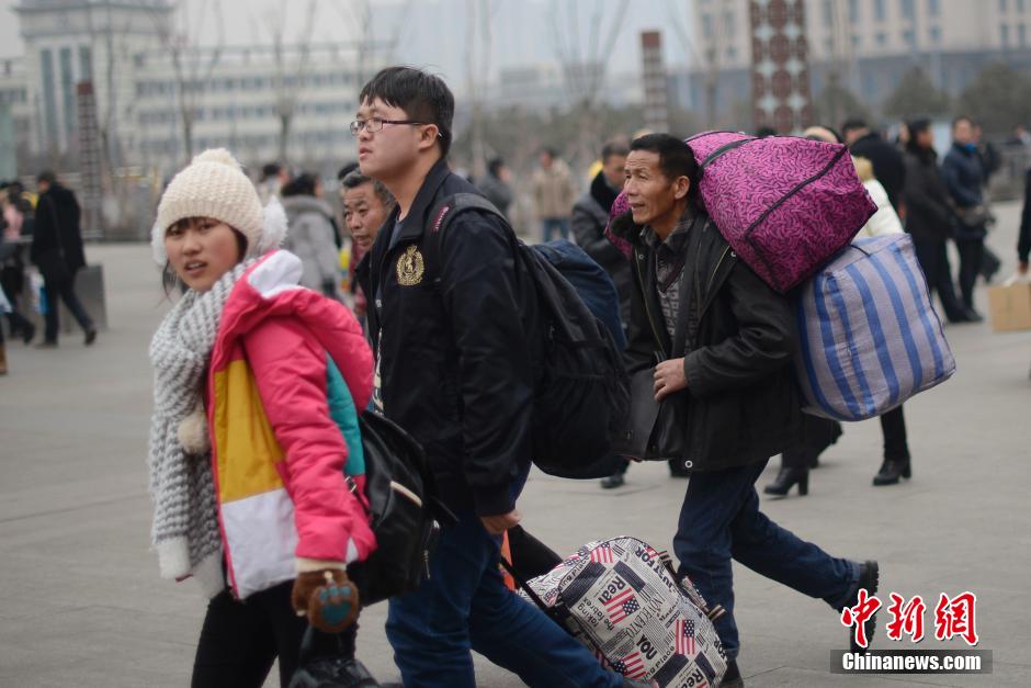 1月20日,山西太原火车站,返乡的学生与农民工准备进站候车。2016年中国铁路春运将于1月24日开启,各地火车站率先迎来大批学生与农民工返乡客流。中新社记者 韦亮 摄