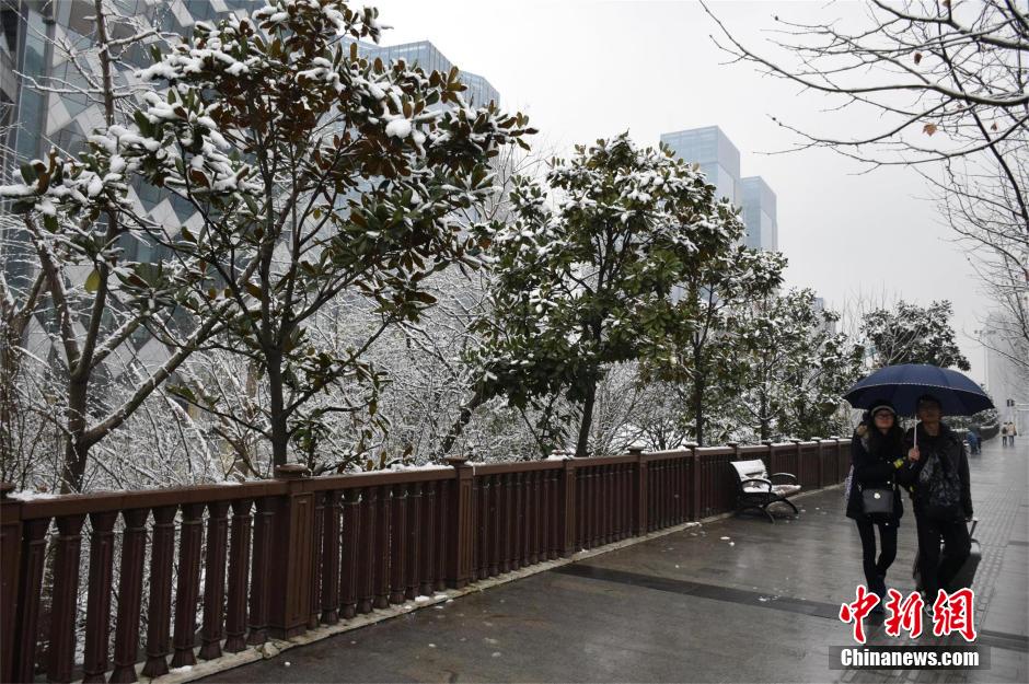 1月21日上午,武汉市民欣赏雪景。湖北入冬首场大范围雨雪天气20日拉开序幕。20日晚间,江城武汉飘起雪花,至21日上午部分地区已出现薄薄一层雪。这是入冬以来,武汉迎来的首场大范围降雪天气。 马芙蓉 摄