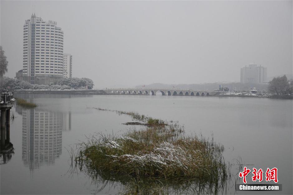 1月21日上午,东湖雪景美如画。湖北入冬首场大范围雨雪天气20日拉开序幕。20日晚间,江城武汉飘起雪花,至21日上午部分地区已出现薄薄一层雪。这是入冬以来,武汉迎来的首场大范围降雪天气。 马芙蓉 摄