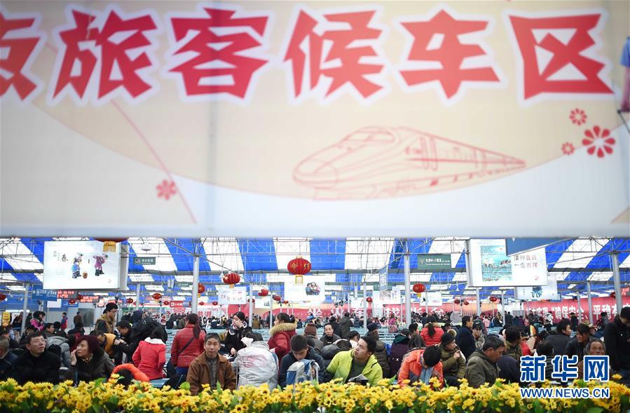 1月21日,旅客在成都火车站春运临时候车厅候车。
