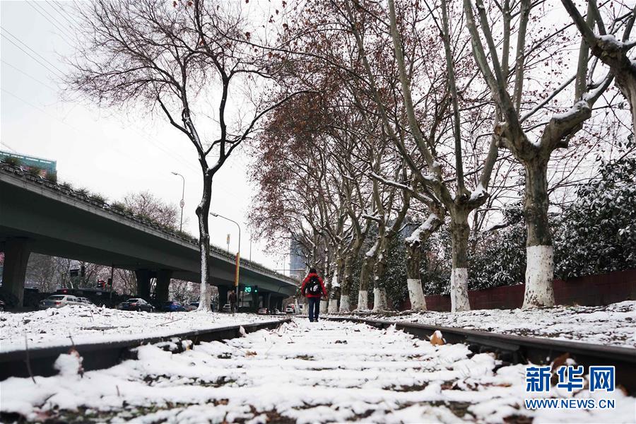 1月21日,市民走在南京街头。1月20日晚开始,南京迎来一场降雪天气。据南京市气象局发布的天气预报显示:1月21日白天南京市中北部地区小雪,其他地区中到大雪,夜里全市有小雪;1月22日全市小到中雪,局部中到大雪;1月23日小雪并渐止。新华社记者 季春鹏 摄