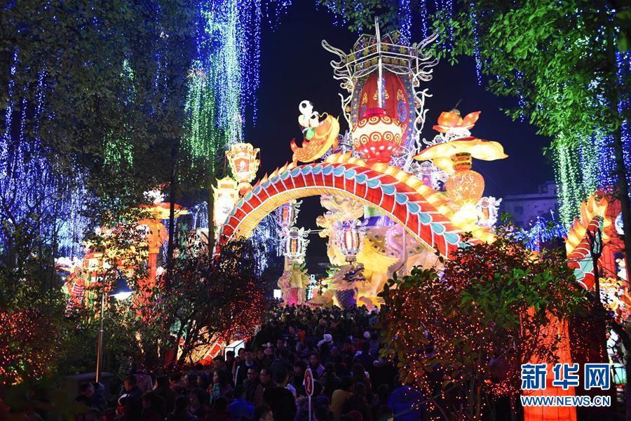 1月21日,众多市民在灯会上观灯。 1月21日晚,以“美丽中国梦璀璨自贡灯”为主题的第22届自贡灯会在四川省自贡市彩灯公园内亮灯,九大景区共计128组大中型彩灯让整个园区瞬间流光溢彩、璀璨夺目。据介绍,自贡灯会自1964年举办首届以来,已先后在全国数百个大中城市举办了灯会,在亚、欧、美洲的40个国家和地区共展出200余次,累计吸引了近3亿中外游人观赏。新华社记者 刘坤 摄