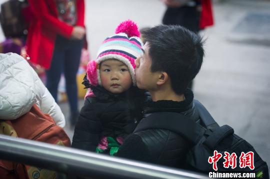 1月21日,贵阳北站,一位旅客怀抱小孩在候车。贺俊怡 摄