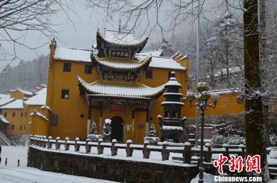 九华山,中国佛教四大名山之一,受此次“霸王级”寒潮影响,自20日14时开始下雪,截至目前降雪12CM,气温下降10℃。章寅虎 摄
