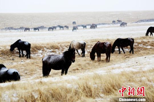 图为山丹军马场的马群冒雪觅食。陈礼 摄