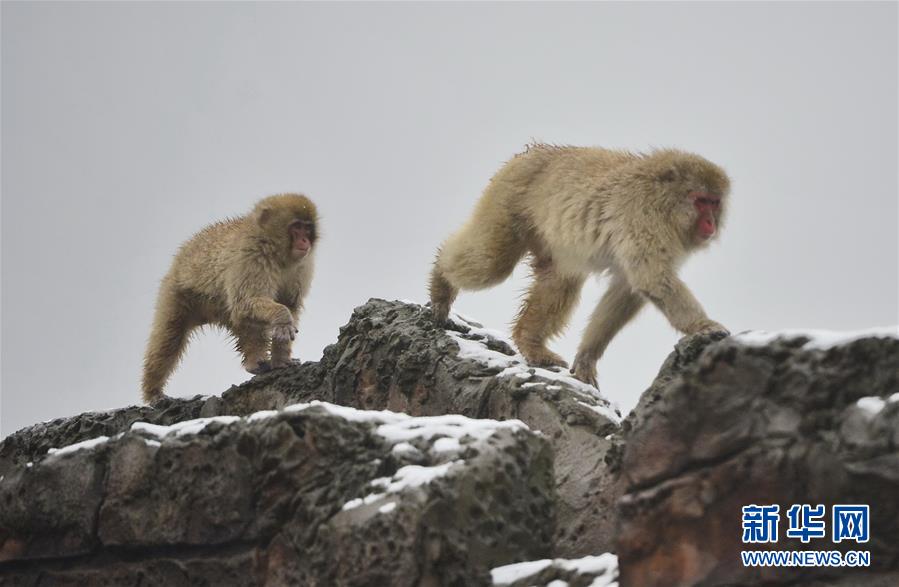 1月22日,南昌市动物园里,两只日本雪猴在雪地里行走。当日,江西南昌降下今冬第一场大雪。 新华社记者 周密 摄