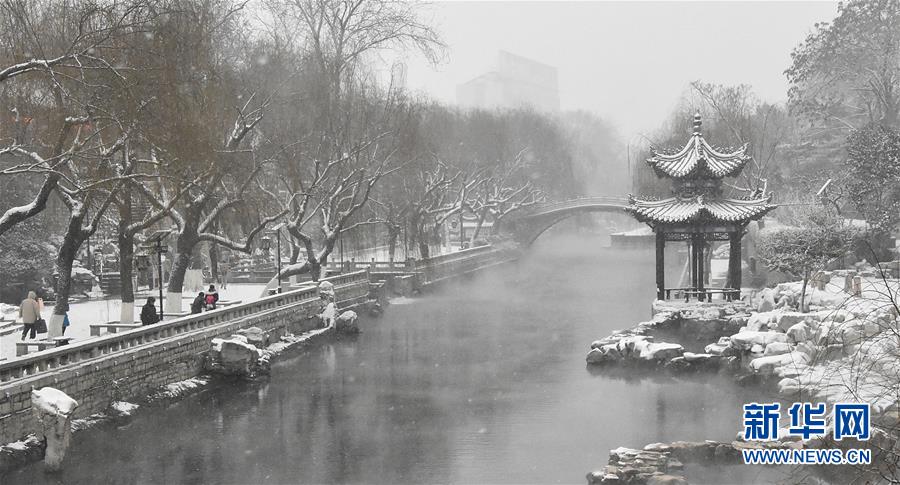 1月22日,济南市环城公园里银装素裹。当日,受强冷空气影响,济南市区出现降雪强降温天气,济南市气象部门已经发布低温和路面结冰预警,提醒市民注意防范。 新华社记者 冯杰 摄