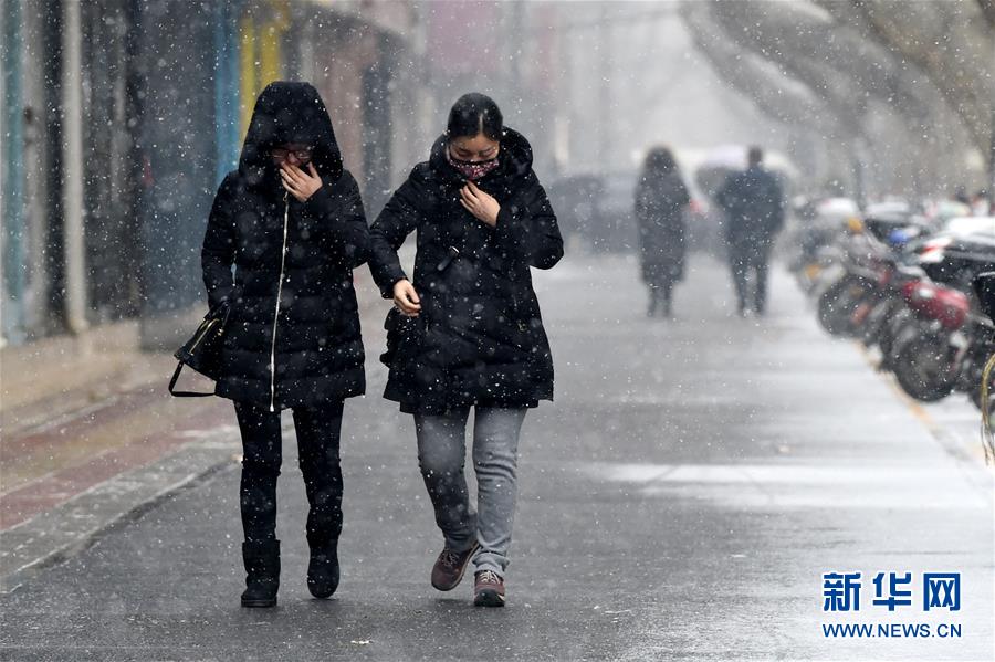 1月22日,郑州迎来2016年首场降雪天气,市民冒雪出行。当日,受北方南下强冷空气影响,郑州市迎来2016年首场降雪天气。河南省气象台1月21日发布了寒潮蓝色预警,预计22日到24日,安阳、濮阳、鹤壁等12个省辖市大部分县市和滑县、长垣、兰考等8个直管县最低气温将下降8摄氏度以上。新华社记者 李博 摄