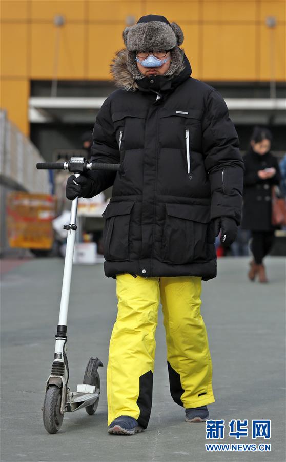 1月22日,市民“全副武装”地走在北京街头。据北京市气象台1月21日16时30分发布的寒潮黄色预警,受强冷空气影响,预计22至23日,北京市最低气温将下降10摄氏度左右,并伴有5、6级偏北风,阵风可达8级左右。新华社记者 沈伯韩 摄