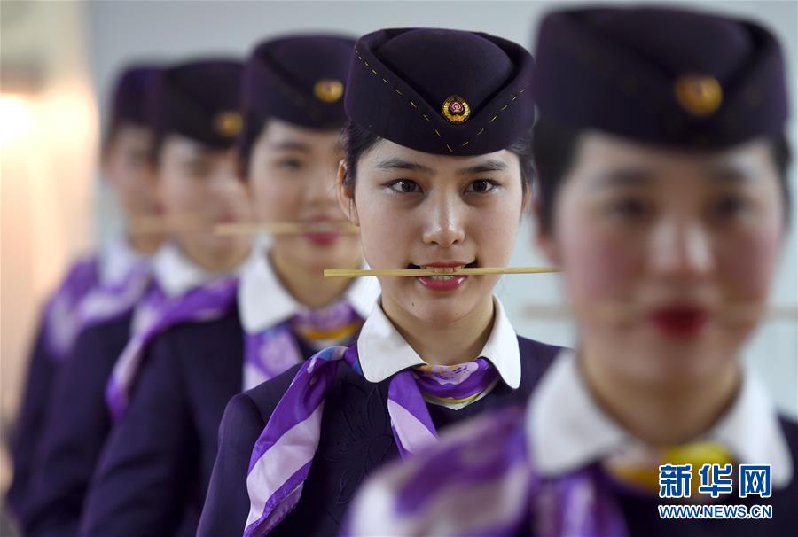 1月21日,杭州客运段“高姐”开展仪容仪表训练。