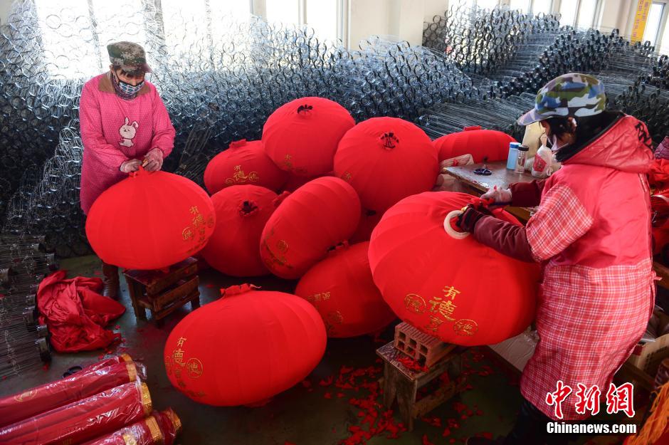 1月26日,工人加紧赶制灯笼。春节临近,合肥市庐阳工业园内的手工灯笼生产企业异常忙碌,150余名工人穿梭在生产线上,不断完成制笼、裁剪、描金等工序,加班加点赶制灯笼。 中新社记者 张娅子 摄