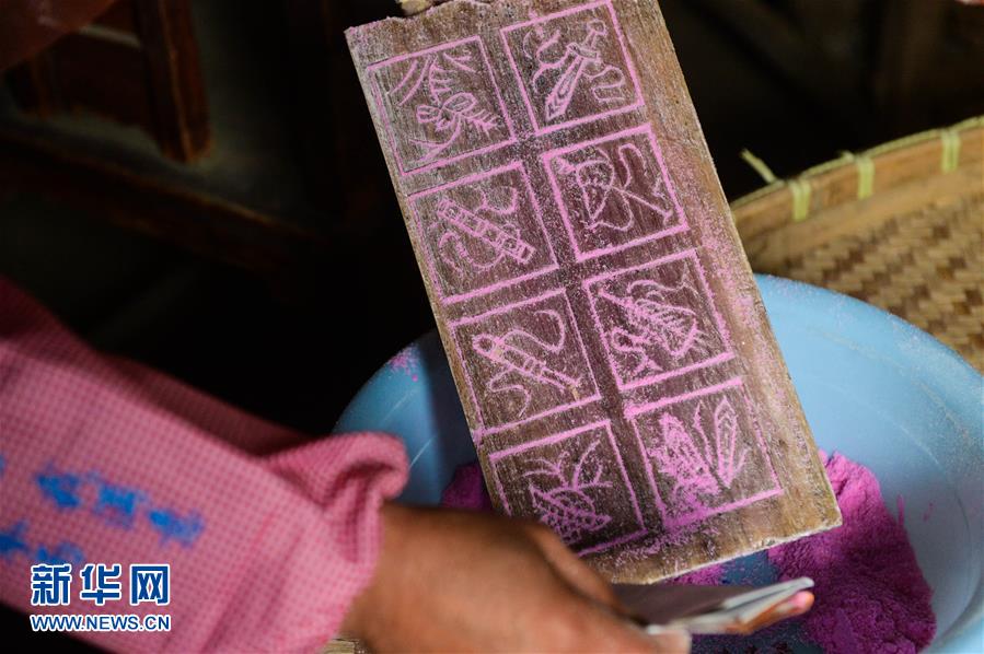 1月27日,这是印制花纹的木刻板。湖州市吴兴区星火村村民在家中用番薯粉和米粉制作传统的番薯米糕。新华社记者 徐昱 摄