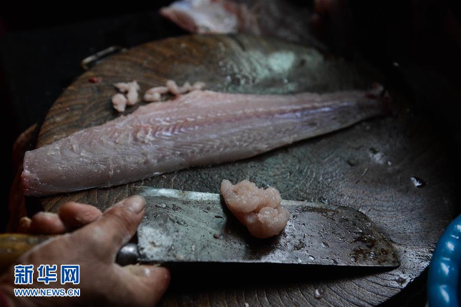 1月27日,湖州市吴兴区星火村村民在家中制作手工鱼圆。新华社记者 徐昱 摄