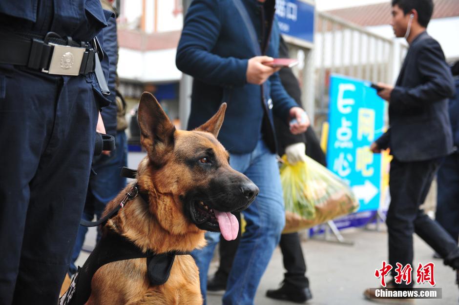 1月27日消息,又是一年春运始,服役5年的警犬“火狼”守候在西昌火车站,它是一只纯正血统的德国牧羊犬,2016年已是它第四次守护着返乡旅客平安出行的春运。训练有素的它每天与它的小伙伴们一同前往车站“巡逻执勤”。 王涛 摄