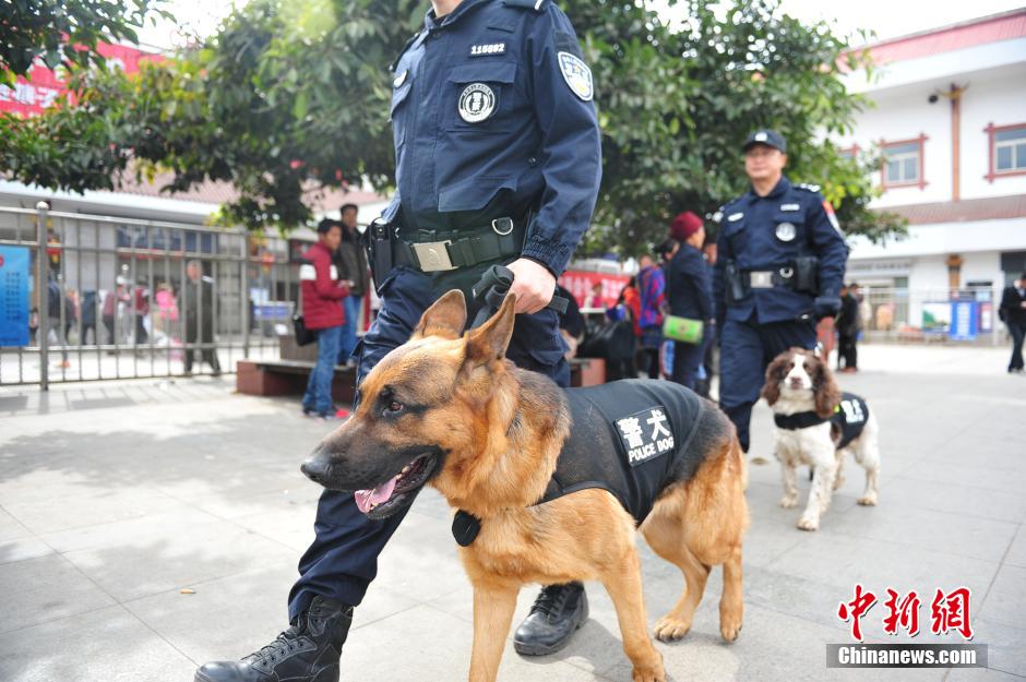 四川警犬“火狼”值守春运护平安
