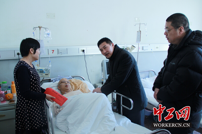 1月27日,德胜街道总工会主席陈洪祥带着20000元一次性救助款,与全总办公厅信息中心主任关明等一行,来到北京第六医院看望地区企业恒华科技公司软件事业中心咨询管理部员工——B型淋巴细胞白血病患者袁彪,了解病情及家庭生活情况,送去党和政府、工会的关怀,并鼓励他配合治疗,安心养病,坚定信心,早日回到工作岗位。