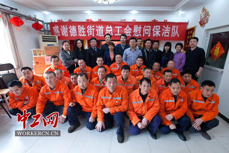德胜街道党政工领导与保洁员们合影留念。 中工网记者 李雪峰 摄