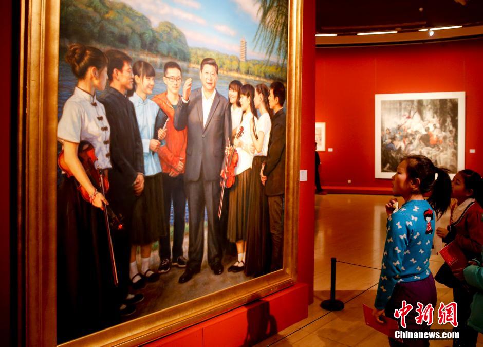 1月28日,“中华民族大团结全国美术作品展”、“翰墨传承——中国美术馆当代书法邀请展”、“偶人世界——徐竹初木偶雕刻作品捐赠展”三大美术展在北京中国美术馆集中亮相,吸引大批民众前往参观。 中新社记者 杜洋 摄