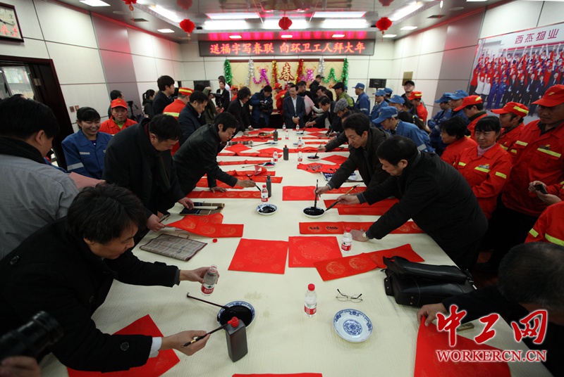 “送福字、写春联”中国职工书法家协会向环卫工人拜大年