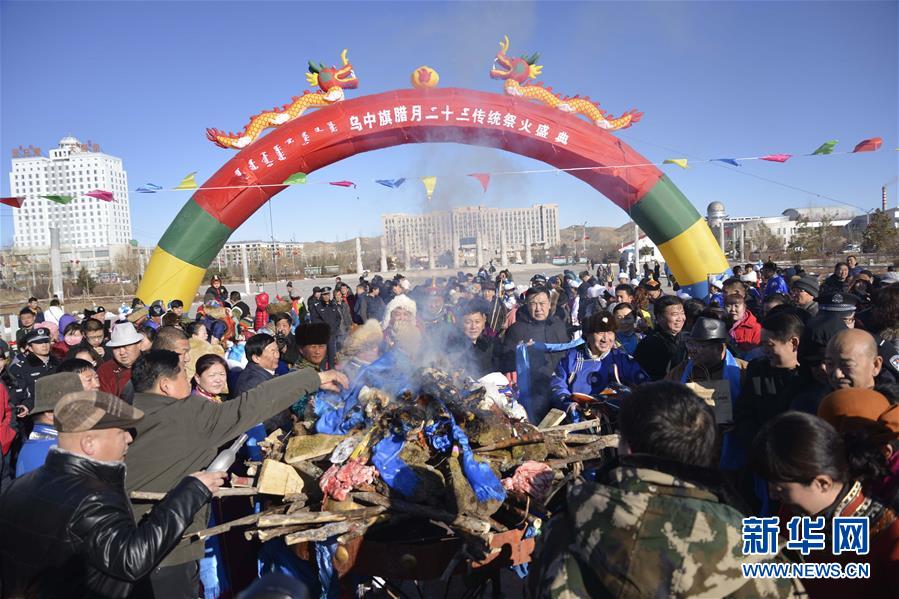 2月1日,人们在内蒙古巴彦淖尔市乌拉特中旗祭火迎春仪式上祈福。当日是农历小年,内蒙古乌拉特中旗周边牧民和社会各界群众欢聚哈萨尔广场,举行传统祭火仪式,祈盼草原风调雨顺,国泰民安。 新华社发(支茂盛摄)