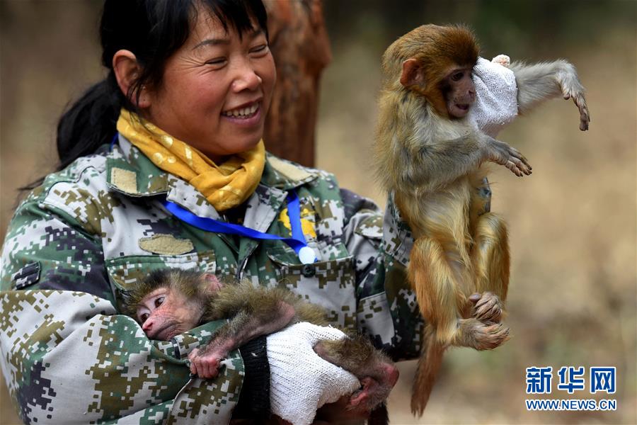 2月1日,刚出生的小猴子在驯养员手中“嬉戏”。为喜迎即将到来的农历猴年,云南野生动物园举行“萌猴”迎“猴年”活动,让动物园的猴子与游客近距离接触。 新华社记者 蔺以光 摄