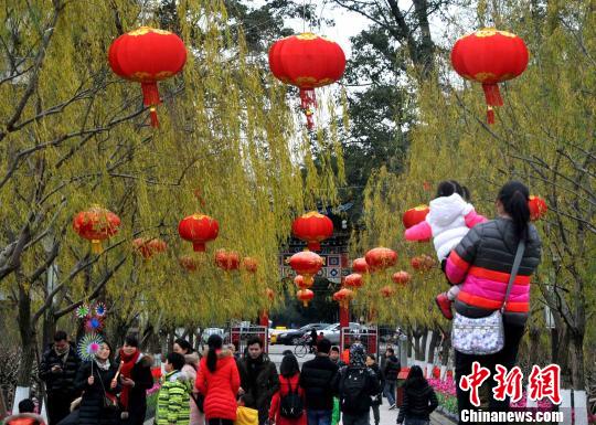 2月2日,随着新春佳节的到来,福州西湖公园挂起了红红灯笼。张斌 摄