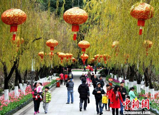 2月2日,随着新春佳节的到来,福州西湖公园挂起了红红灯笼。张斌 摄