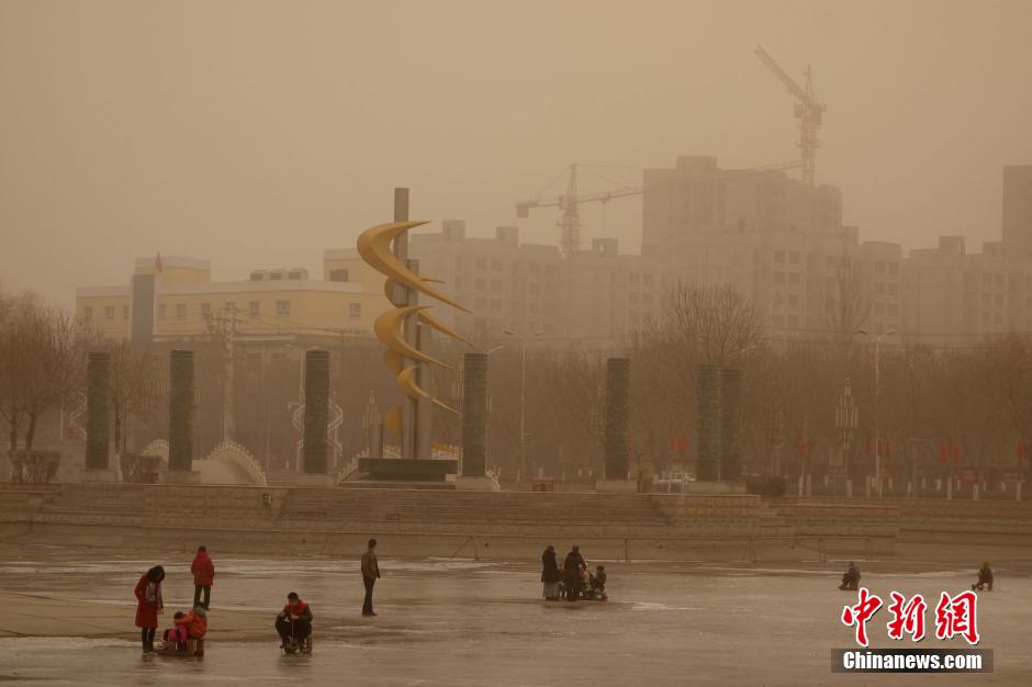 2016年2月11日,新疆维吾尔自治区吐鲁番地区,当天,受强冷空气入侵影响,新疆吐鲁番盆地遭遇今年强沙尘天气,吐鲁番市高昌区整个城区笼罩浓浓的沙尘中,天空一片昏暗,当地气象部门中午12时首次发布沙尘暴黄色预警信号:吐鲁番市托克逊县已出现沙尘暴天气,能见度为700米,预计沙尘暴天气还将持续。