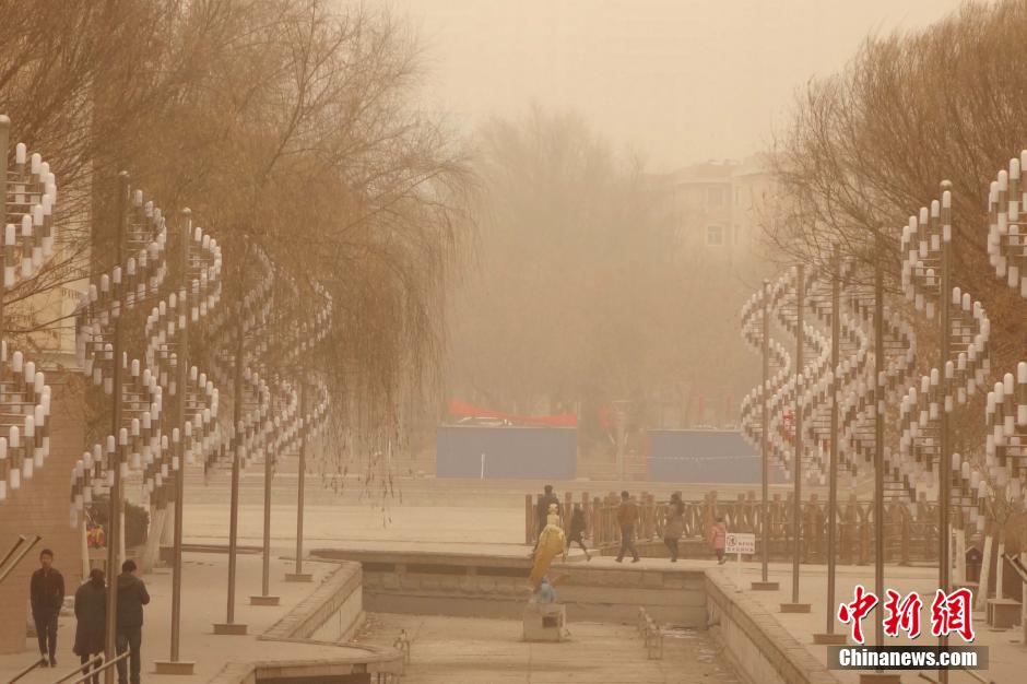 2016年2月11日,新疆维吾尔自治区吐鲁番地区,当天,受强冷空气入侵影响,新疆吐鲁番盆地遭遇今年强沙尘天气,吐鲁番市高昌区整个城区笼罩浓浓的沙尘中,天空一片昏暗,当地气象部门中午12时首次发布沙尘暴黄色预警信号:吐鲁番市托克逊县已出现沙尘暴天气,能见度为700米,预计沙尘暴天气还将持续。